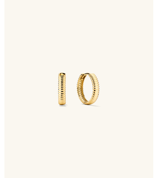 Ihre Lieblings-Bold Hoops jetzt mit Plissé-Struktur. So auffällig wie wirkungsvoll, handgefertigt aus naturpositivem Salmon Gold.