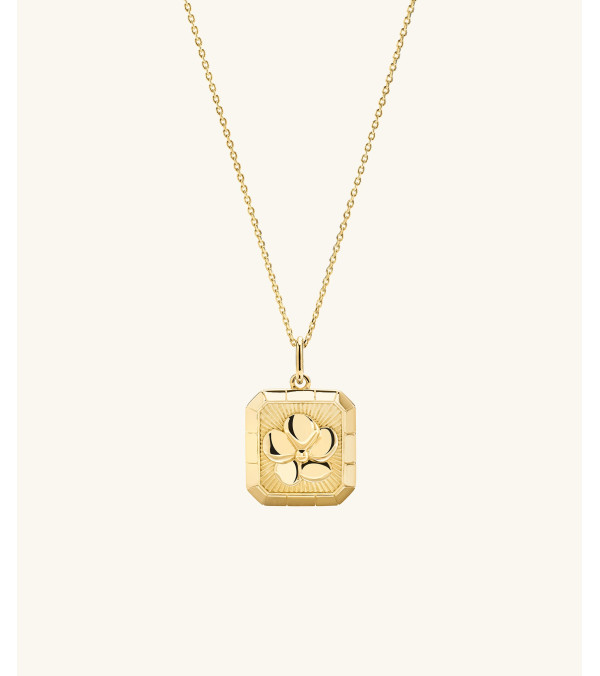 Ein neu interpretiertes Herzstück. Lassen Sie diese florale Kette immer sichtbar. Handgefertigt aus 18k Gold-Vermeil mit Blütenmotiv und rundem Rahmen.