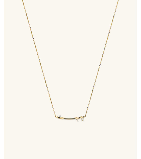 Wie die Kurve des Nachthorizonts mit leuchtenden Sternen: Diese Kette zeigt drei im Labor gezüchtete Diamanten an einer gebogenen Stange. Teil der Celeste-Kollektion, inspiriert von Sternen und Sternbildern, entworfen, um jedem Layering mehr Dimension zu verleihen.