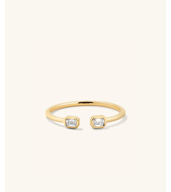 Erschließe dir eine Welt voller Möglichkeiten mit dem Open Ring aus im Labor gezüchteten Diamanten. Mit einem kühnen Emerald Cut und einer Einladung, ihn auf unzählige Arten zu stylen.