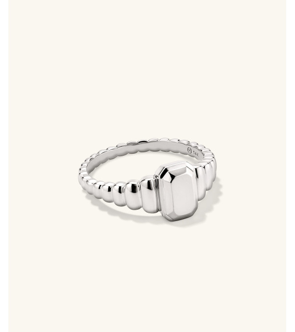 Setze ein Statement (das tust du immer). Dieser gravierbare Siegelring verleiht jedem Look Textur und den letzten Schliff.