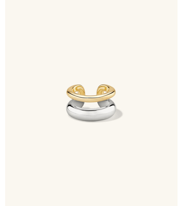 Mit unserer Duet-Kollektion wird das Stapeln ganz einfach, wirklich einfach. Dieser Stil ist eine Lektion in Dualität und zeigt gemischte Metalle in zwei Breiten. Handgefertigt aus 18k Gold-Vermeil und Sterlingsilber.