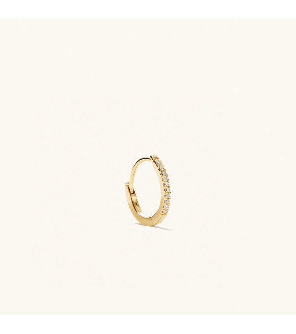 Haben Sie unsere Diamonds Line Mini Hoops geliebt? Dann sind diese stimmungsaufhellenden, zu jedem Outfit passenden Hoops genau das Richtige. Bringen Sie Ihre Ohrring-Kollektion mit diesem Diamantstück auf das nächste Level – handgefertigt aus recyceltem 14k Massivgold. Außerdem wurde dieser vielseitige Stil so entworfen, dass er auf zwei Arten getragen werden kann: mit Pavé-Diamanten gestapelt oder für ein schlichtes 14k-Finish umgedreht.