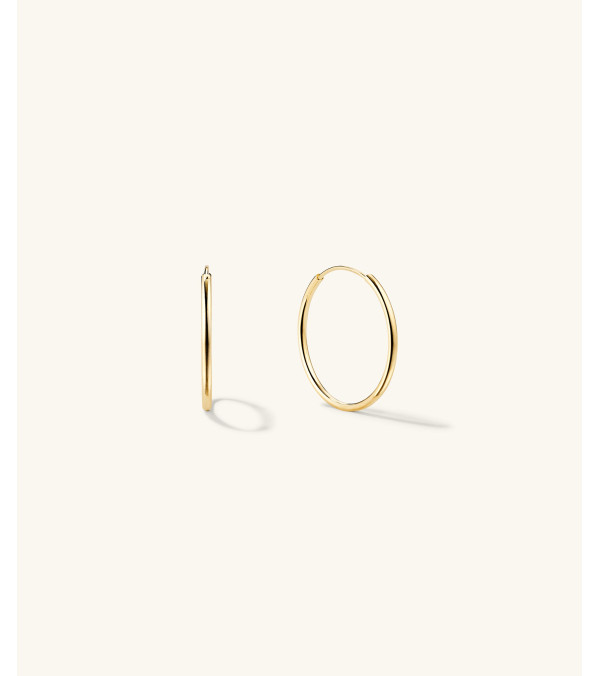 So basic wie Ihr weißes T-Shirt (wirklich)! Handgefertigt aus ausgehöhltem 14k Massivgold, unsere leichtesten Hoops überhaupt. Tragen Sie sie den ganzen Tag, jeden Tag – sogar beim Schwimmen, aber bitte vor dem Schlafen abnehmen.