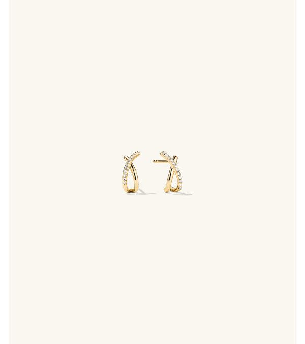 Ein bisschen Zuneigung. Inspiriert vom Gruß XO, feiert dieses Stück Zuneigung für alle (aber am meisten für sich selbst). Handgefertigt aus 14k Gold und besetzt mit verantwortungsvoll gewonnenen Pavé-Diamanten, die sich sanft überlappende Röhrenlinien bilden.